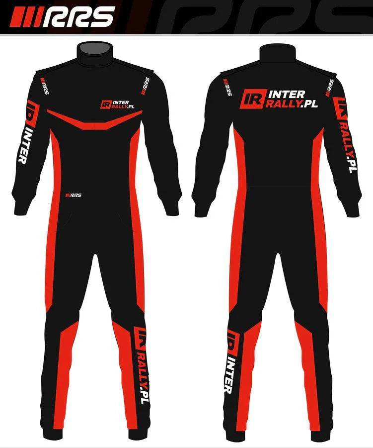 Kombinezon RRS ONE (bez FIA) sygnowany logiem Inter Rally, najlepszego sklepu rajdowego. Idealny do zawodów KJS, Track Day, kartingu.